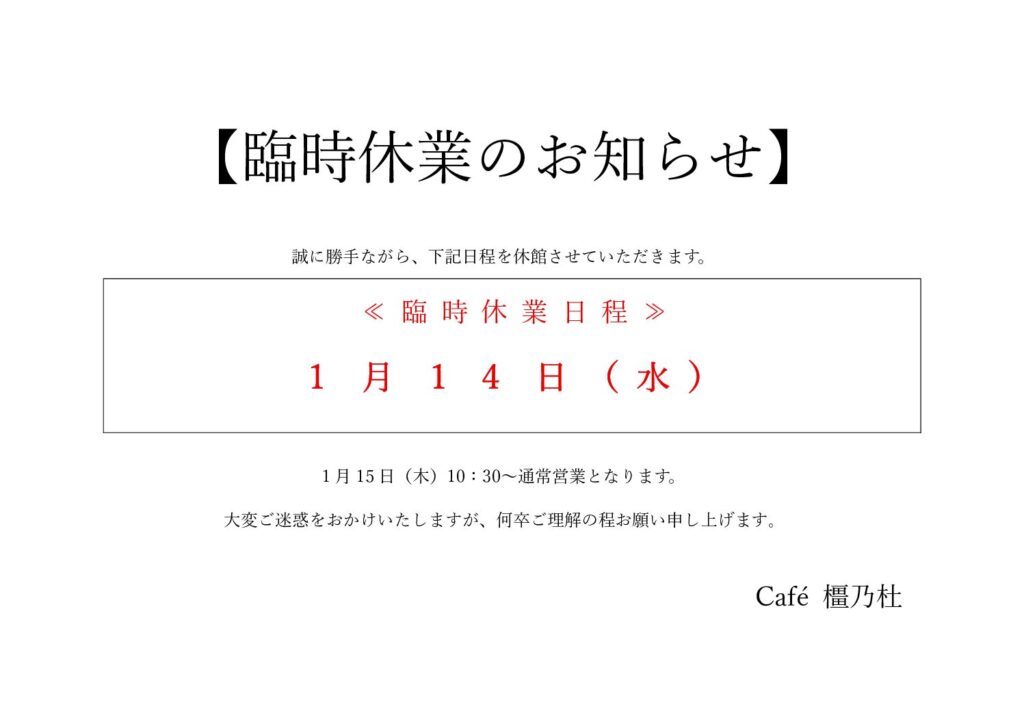 1月14日(水)はカフェ橿乃杜を臨時休業いたします。 ※橿原神宮養正殿は通常営業 […]